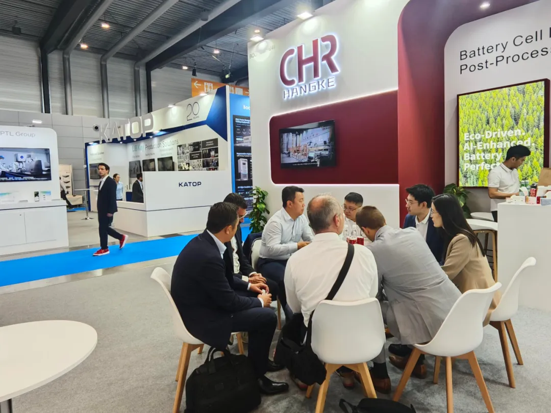 杭可科技展位洽談區,中外嘉賓圍坐論道,在“Eco-Driven”與“AI-Enhanced”的技術語境中,深度研討鋰電后處理系統的生態化升級與智能化突破。從電芯的精準化成策略,到全流程低碳生產路徑,專業視角的碰撞間,合作的共識持續凝聚,為杭可開拓歐洲市場注入強勁動能。