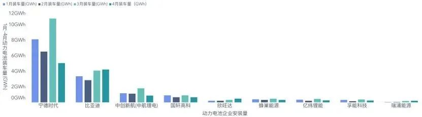 ▲圖1. 1-4月動力電池企業的供應情況