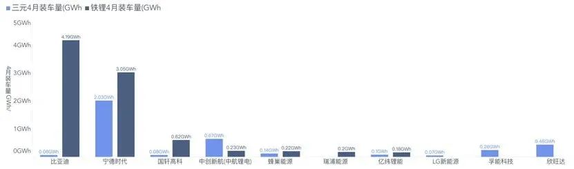 這是寧德時代和比亞迪差距最小的一個月,其中磷酸鐵鋰電池比亞迪的安裝量還反超了寧德時代。在這個里面電池的需求還是非常取決于車企的能力。