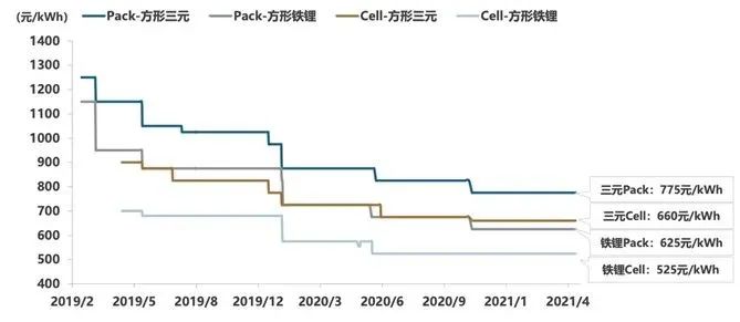 從原料端來看,由于年底電池的高需求和低產量,從12月到2月份一般是鋰資源的供應不平衡的節點,在這個風潮下,碳酸鋰的價格一口氣從20萬干到50萬。這使得電池的價格飛漲,電池的價格也就造成了2021年的底部,往上走了0.2-0.3元每Wh。國內抬上去的碳酸鋰價格,影響了海外鋰輝石結算價格,這使得目前拍賣的均價跑上了5000美金/噸。