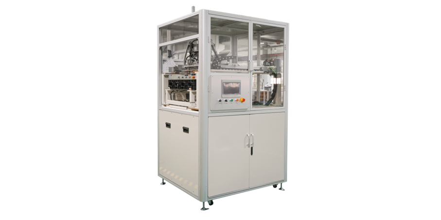 用于方形鋁殼電池注液口化成膠釘自動拔出,將來料待拔釘托盤送至拔釘工位,系統(tǒng)感應托盤到位后,托盤精準定位,系統(tǒng)根據(jù)拔釘工藝流程開始拔釘并檢測,該設(shè)備由輸送掃碼機構(gòu)、電池托盤定位機構(gòu)、拔釘機械手、壓電池機構(gòu)、膠釘回收機構(gòu)、控制系統(tǒng)人機界面組成。